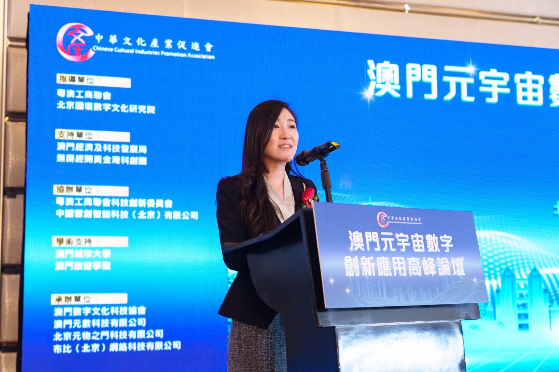 邵丹表示,在國家文化數字化戰略指導下,在數字經濟時代背景下,文化產業的轉型升級與科技業的創新發展密切相關。以元宇宙、人工智慧等為核心的綜合技術賦能文旅發展,同時文旅行業蘊含的歷史底蘊、人文特色又豐富了相關技術的應用,兩者相互促進、深度融合。北京圖壤數字文化研究院旨在推進文化與科技融合發展,助力中華優秀 傳統文化創造性轉化、創新性發展,用科技助力中華文化全球傳播。一直以來,澳門注重文化建設與科技發展,形成了以中華文化爲主流的多元融合特色文化。很榮幸通過本次論壇,搭建了與澳門各界溝通的平臺,希望藉此平臺,參與並融入澳門多元文化的建設,同時,促進澳門與內地的文化與科技創新交流,共同為建設文化強國、科技強國貢獻力量。
